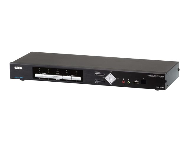 ATEN USB 4K HDMI Multi-View KVMP™-switch med 4 portar, 4096 x 2160 pixlar, Nätverksansluten (Ethernet), 4K Ultra HD, Rackmontering, 16 W, 1U