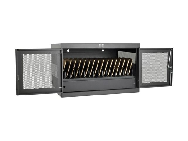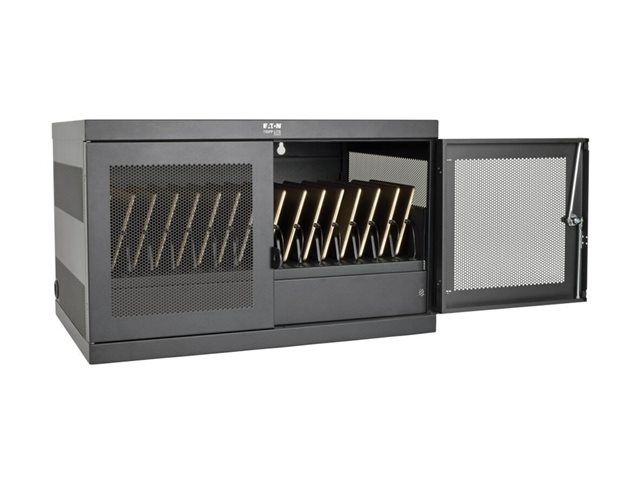 Eaton Tripp Lite Series 16-Device USB Charging Station Cabinet with Sync for iPad and Android Tablets, Wall-Mount and Cart Options, 230V, BS1363 to C13 Plug, Black