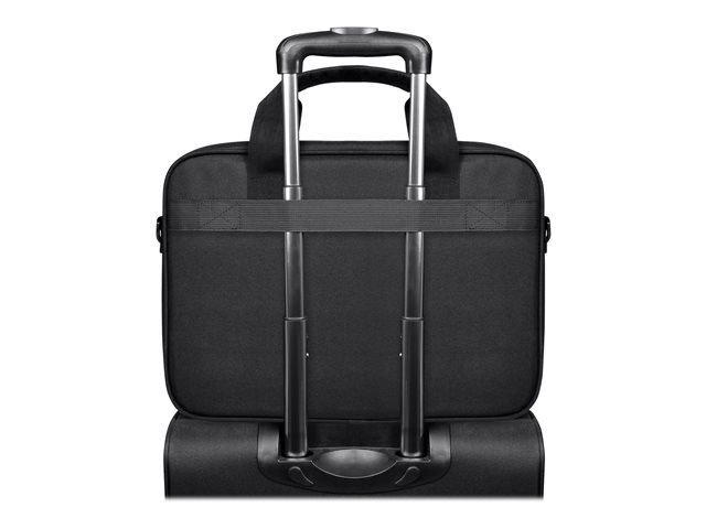 - Flera bäralternativ, inklusive en avtagbar axelrem, handtag på ovansidan och en rem för att fästa på resväska