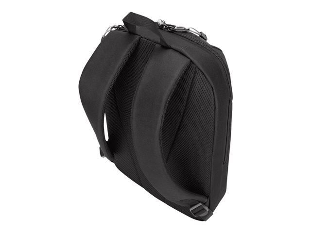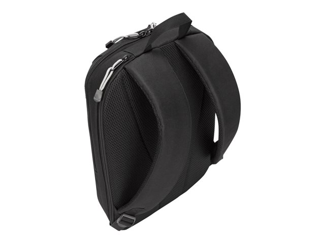 Get professional style and abundant organization with the 12"- 15.6" GeoLite Advanced Backpack. With a clean, lightweight look, it's ideal for professionals who want laptop protection and added organization in a modern silhouette. The Targus quality foam compartment protects your laptop from everyday bumps. The padded back panel includes air mesh for added comfort. Multiple zippered pockets inside and out keep you efficiently organized. Dual side pockets keep your hydration and umbrella close at hand. Travel with ease atop rolling luggage with the integrated trolley strap. Durable, dobby polyester in modern slate gray delivers minimalist good looks. Water-repellent fabric helps keep it looking good for the long haul.