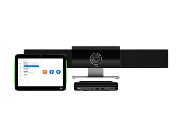 För zoomningsrum - paket för videokonferens (Poly Studio USB videobar, Poly TC10 pekstyrenhet, HP Mini Conferencing PC) - Zoomcertifierad, Certifierad för Microsoft-teams - svart