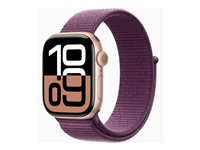 Apple Watch Series 10 (GPS + Cellular) - 42 mm - guldrosa aluminium - smart klocka med sportögla - mjukt nylon i dubbla lager - plommonfärgat - handledsstorlek: 130-200 mm - 64 GB - LTE, Wi-Fi 4, UWB, Bluetooth - 4G - 29.3 g
